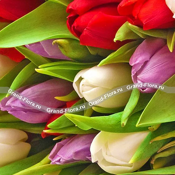 Любимые цветы моей супруги. Выбрал букет из разноцветных тюльпанов 17 шт. Все привезли, вручили ей лично в руки. Цветы свежие, всё без нареканий!